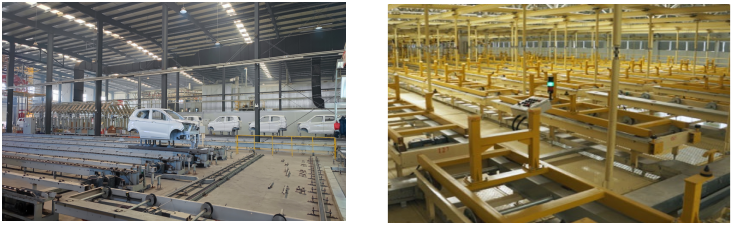 而乘用車輸送設備分為前處理電泳輸送設備和后處理輸送設備